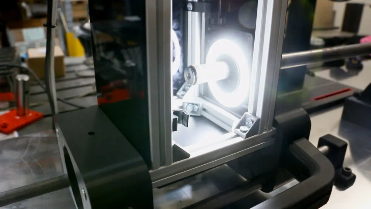 Visionsystemet er i en sort boks, som via en slæde trækker sig frem og tilbage på en skinne. Gennem et hul i boksen kan man trække slæden over røret.